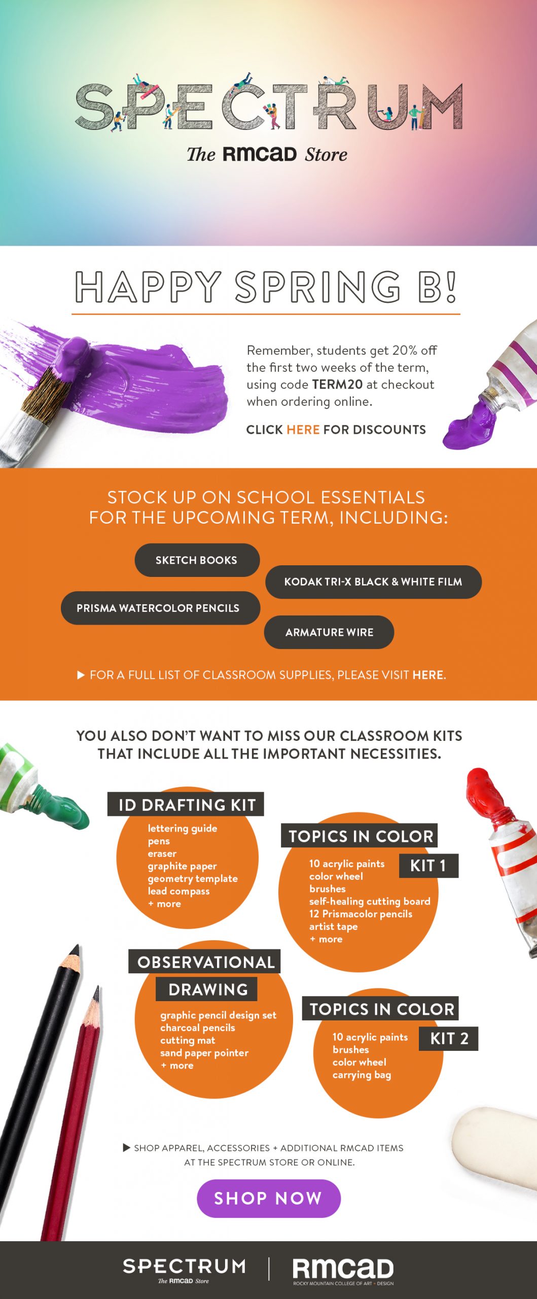 From email newsletters to signage, these creative design examples showcase various design elements, colors, and layouts that align with RMCAD’s visual identity.
